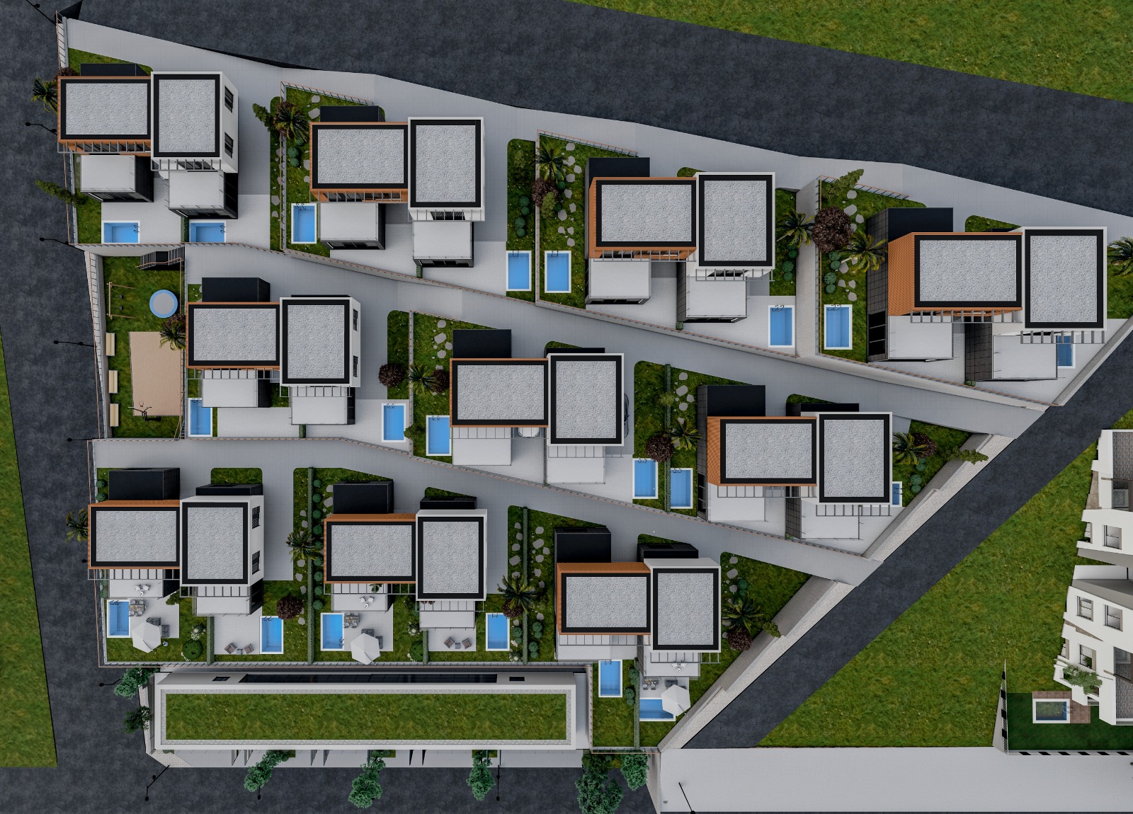* 20 Adet müstakil bahçeli, havuzlu ve kapalı otopar mevcuttur.